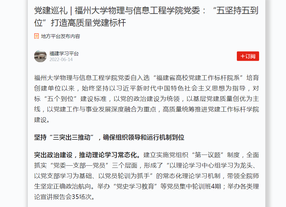6月13日-14日,人民网、新福建、党建网、学习强国等媒体以《“五坚持五到位”打造高质量党建标杆》为标题,先后刊发了在线德州扑克-德州扑克线上平台 党建标杆建设情况,介绍了相关建设经验和做法。